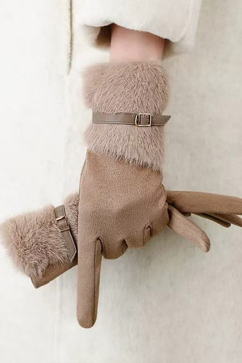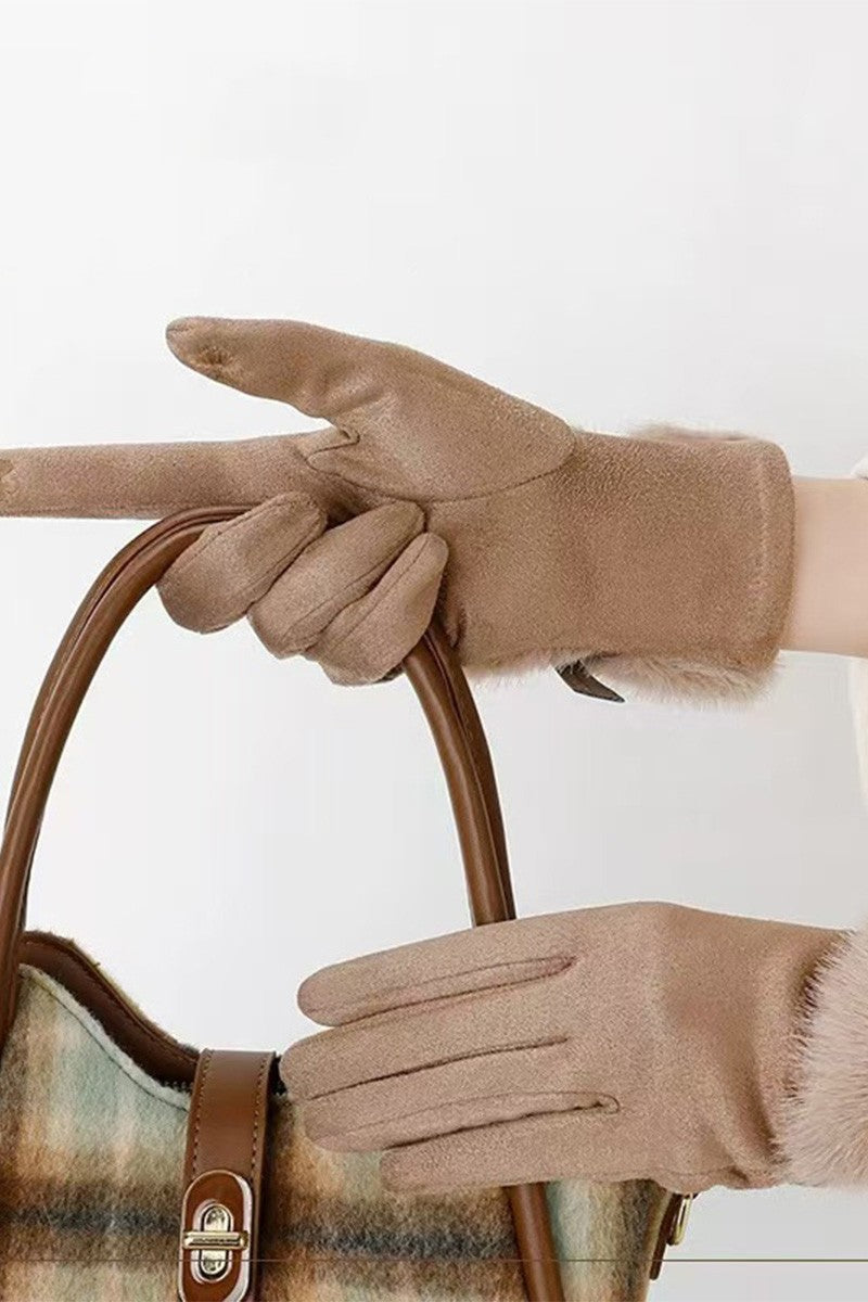 Fur Trim Suede Gloves