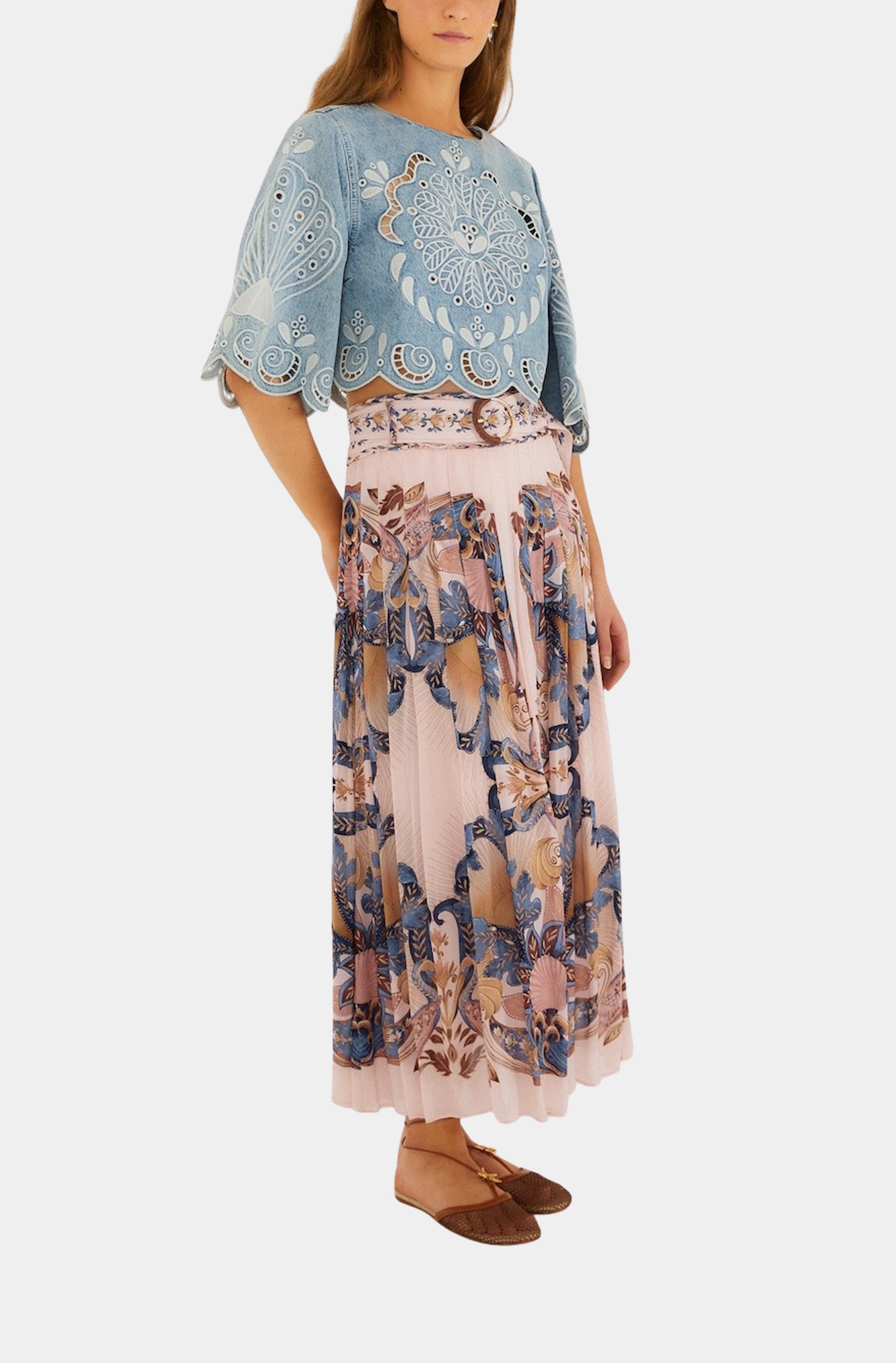 Farm Rio Twill Mini Skirt with Geometric Richelieu